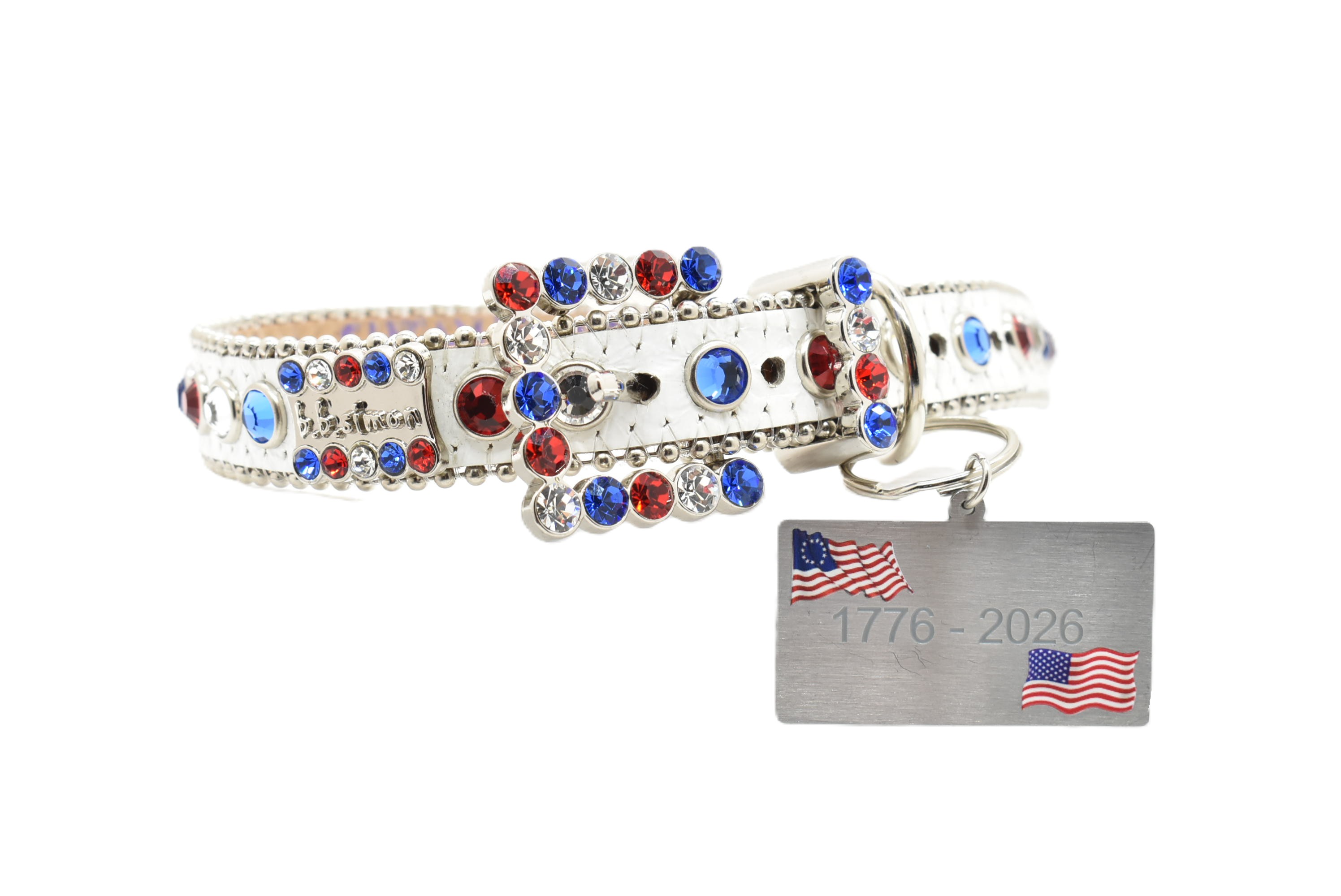 USA 250th Birthday Commemorative Dog Tag.  Back Side of tag features Trump 45 – 47 to commemorate the historical comeback of President Trump during this time!